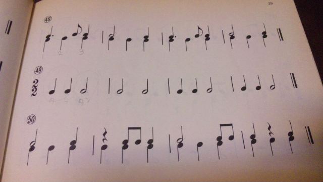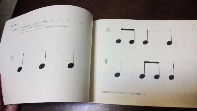 どの本も前半にリズムの課題、後半にソルフェージュ(視唱)の課題があって、それを平行して進めて行きます。