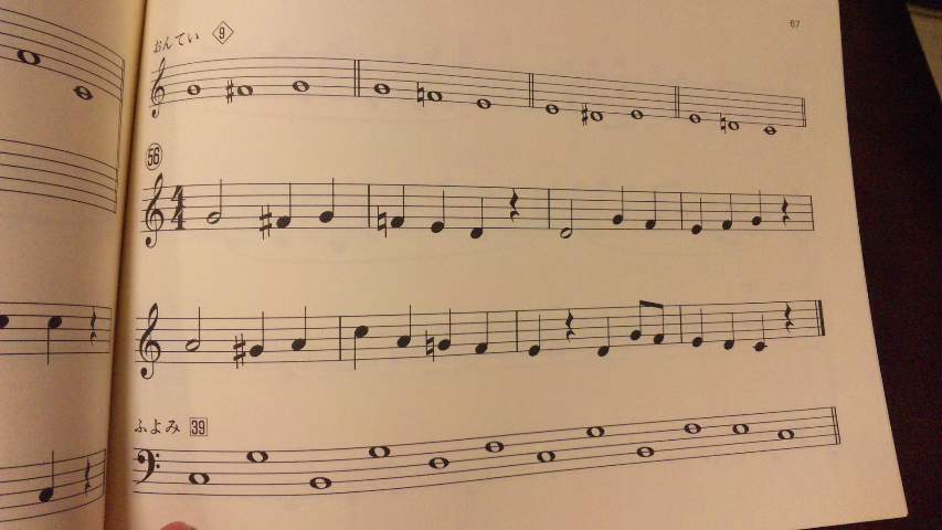 メロディーを歌う課題の他に、「おんてい」や「ふよみ」といった課題もはさんであります。