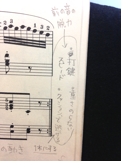 えー、↑は大人の生徒さんのツェルニーのレッスンで楽譜に私が書いた書き込みです。
