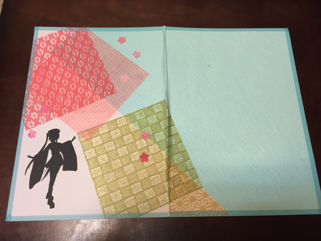 しっかりとしたボール紙にいくつかの和紙が貼ってあり、周りもブルーのテープできれいに縁取りして貼ってあって、そしてなんとミクちゃんまでいる!!