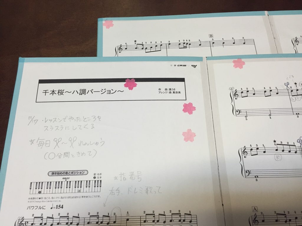 Iちゃんは今発表会に向けて自分から「ひきたい曲があるの」と言って選んだ初音ミクの「千本桜」を練習中なのですが、ダウンロードで購入してプリントした楽譜がすっごくかっこよく変身していた!!