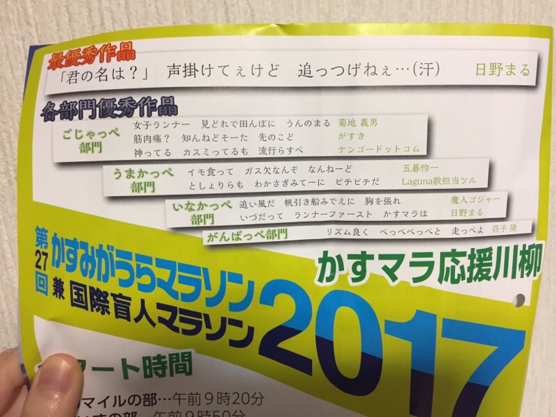さてこちらは土浦の広報誌かなにかに載っていた今年の「かすマラ川柳」。