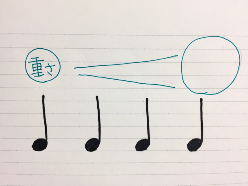 そのフレーズをクレッシェンドしたい時には乗せた重さをだんだん増やして行きます。