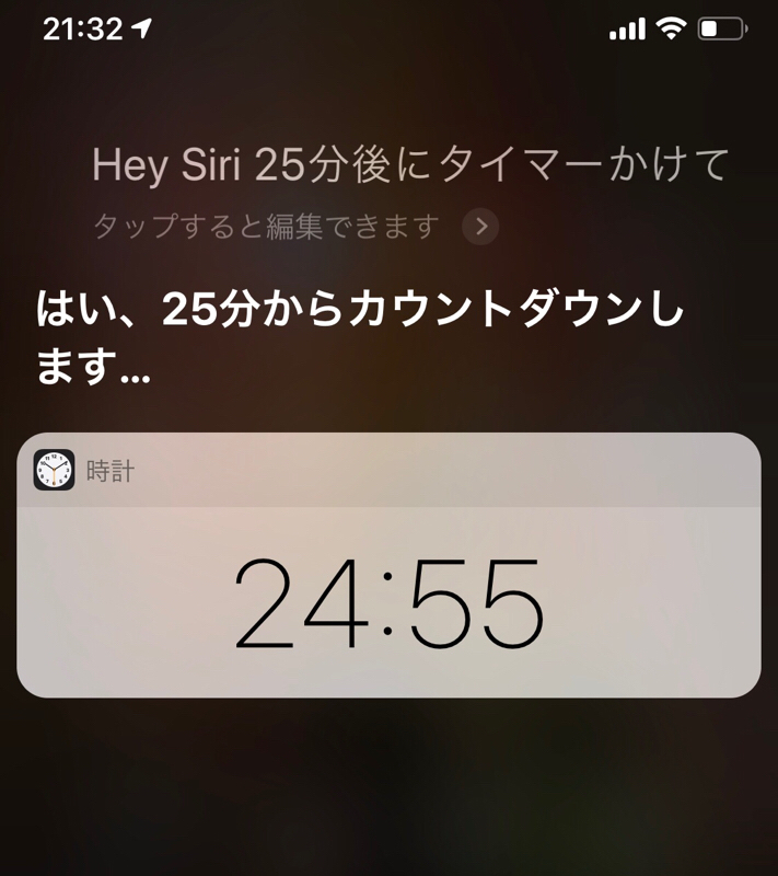 「Hey, Siri ! 10分後にタイマーかけて」