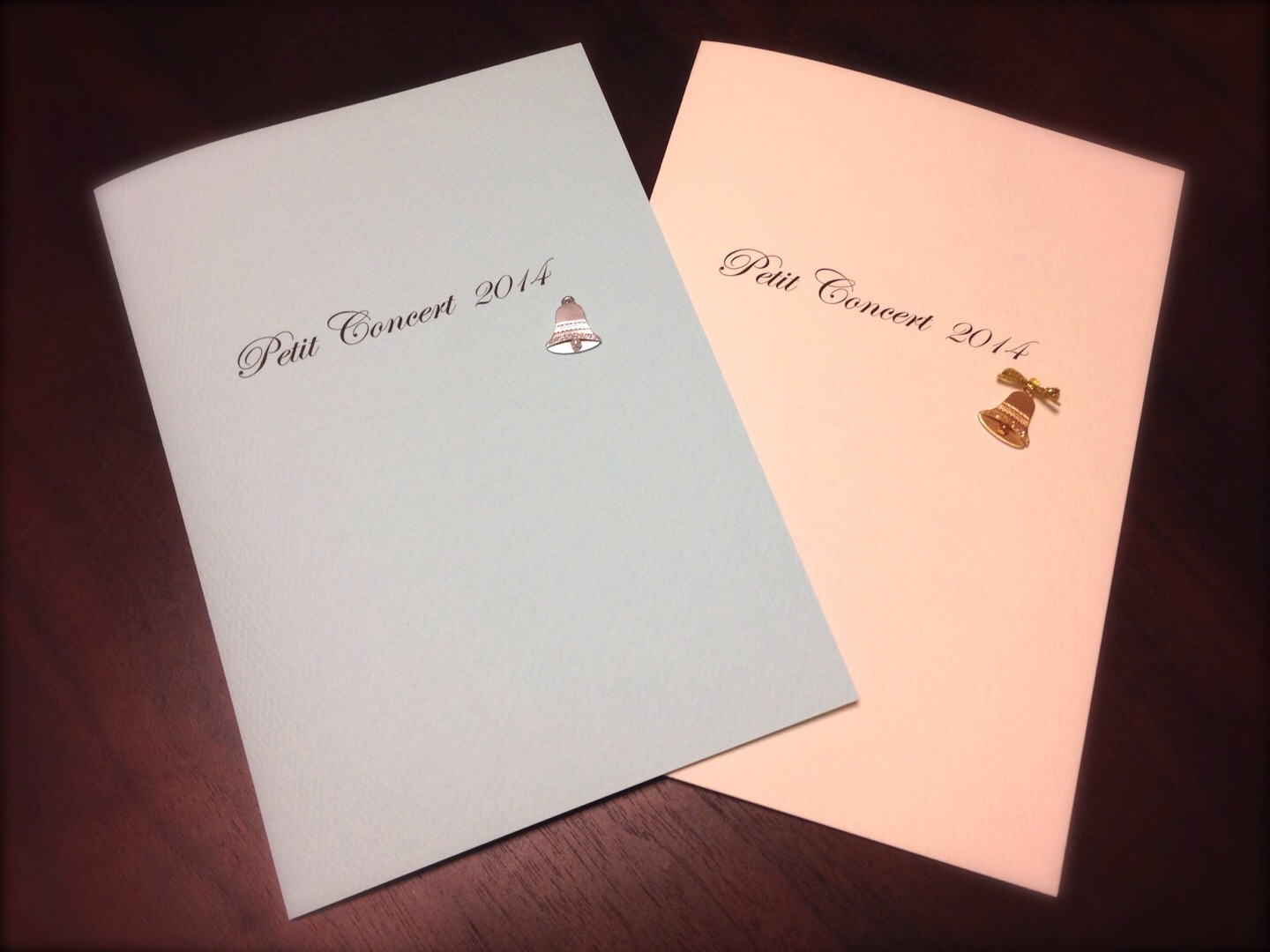 でも・・・・・ちょっとこれはもう次はムリ・・・・かな。(汗)やってみたら大変過ぎた・・・これページにして8ページに及ぶんだけど、発表会前にこれとプログラム1人で全部作るのはちょっとムリがあった。他のお手紙とかもあったし…。データ作るのもそうだけど、プリントするのも果てしなく終わらないし(プログラムと合わせて6面)、折るのだって手折りだしね・・・結局お手伝い頼んでしまった。次からは考えないと・・・。まあ自分が弾かないならまた違うんだけどねえ。