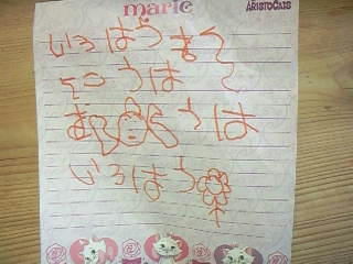 解読不能。(笑)でもいっしょうけんめい書いてくれたのは伝わってくるよ!