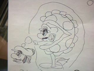 えーこれは子どもチームのRちゃんが描いたマリオ。