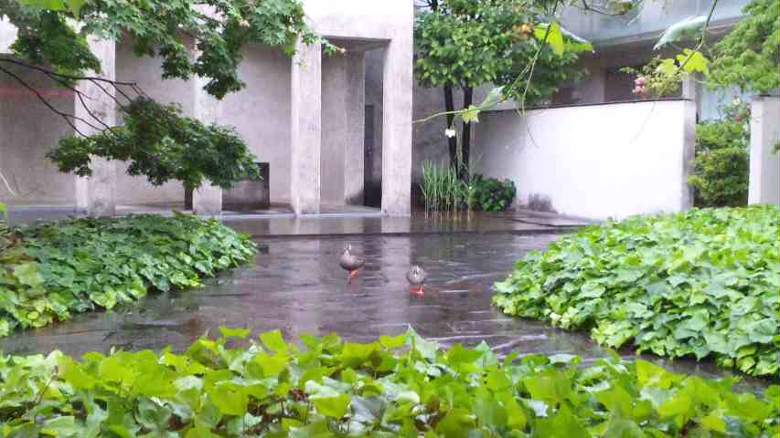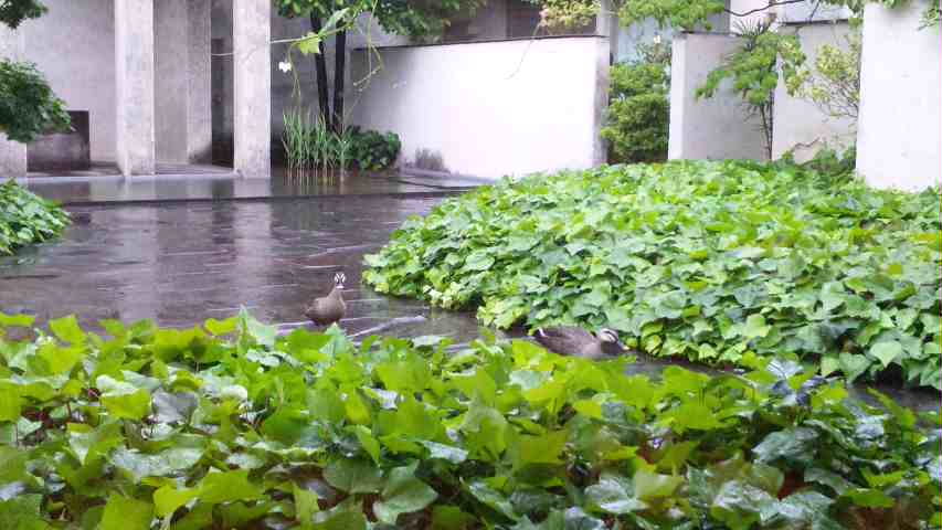 なんと窓の外にカルガモ(たぶん)が!!!