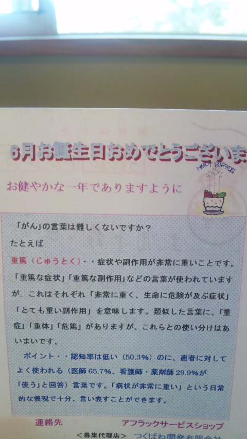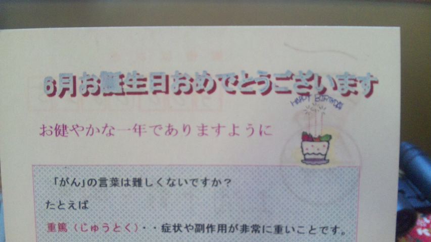 お祝いと言えばね、少し前に某生命保険の会社から「6月お誕生日おめでとうございます」ってハガキが届いたんですよ。