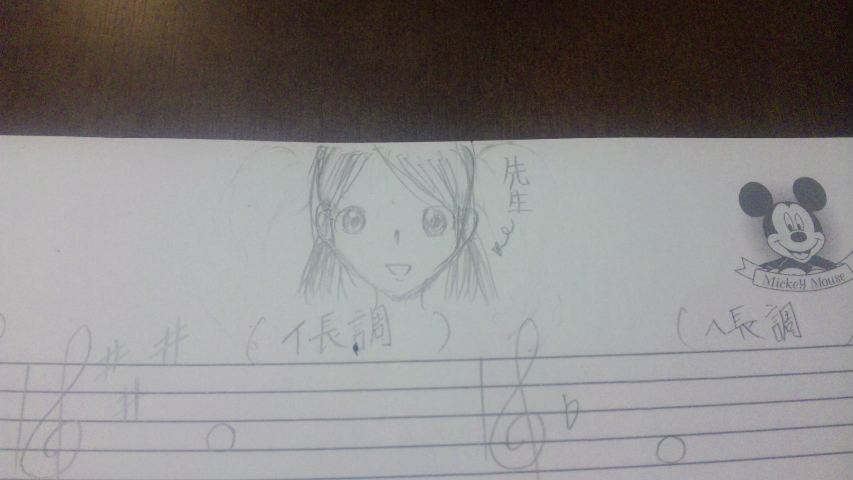 これ、中学生のRちゃんがノートの宿題の空いてるところに描いてきてくれた先生♪