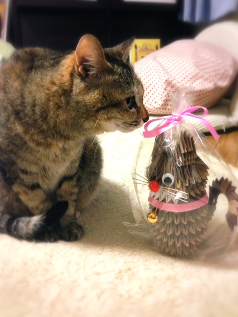それで、猫飼ってるからにゃんこがいいな♪って言ったら、いちごちゃんの写真送って下さい、って言ってくれたのでメールで送って、そしてそれを見ていちごちゃんに色とか似せて作ってくれたんですよーーーー!!!