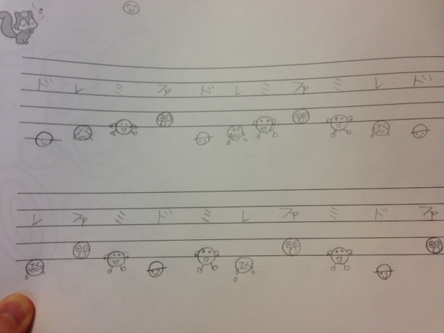 みんな顔が付いてるのは私が顔書いて音符教えるからです。
