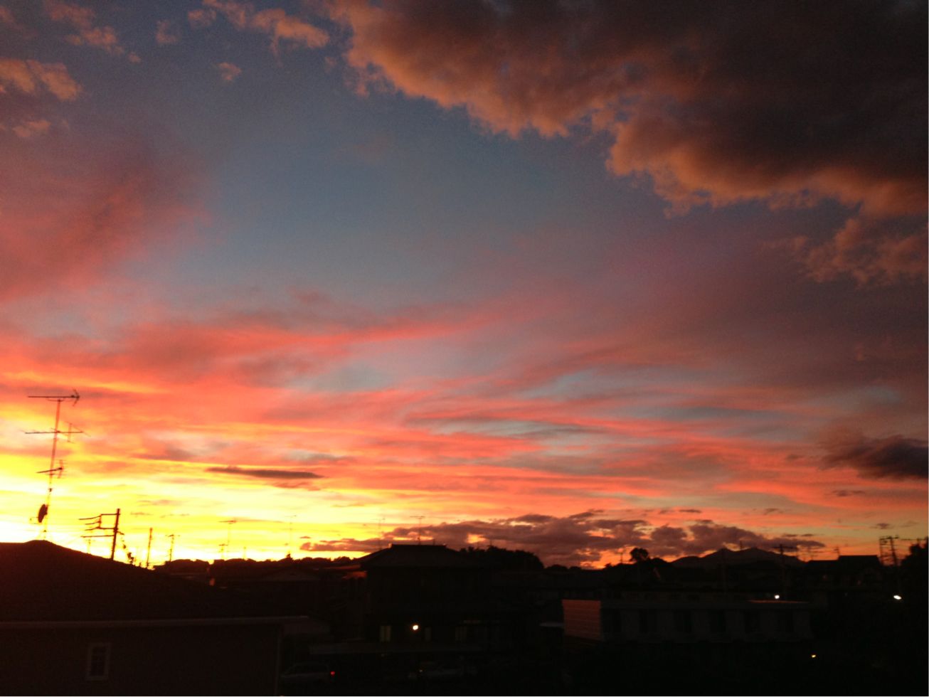 私が子供の頃は空が燃えるような、周りの景色が全てオレンジに染まるような夕焼けをよく見たように思うのですが、今はあまり見なくなりましたねえ。