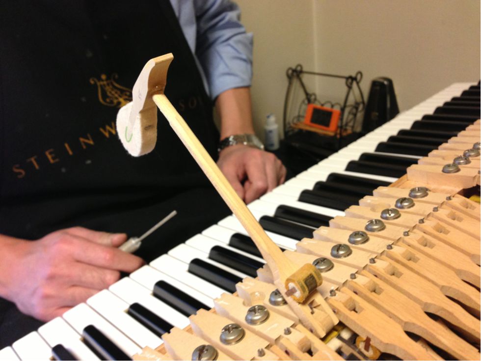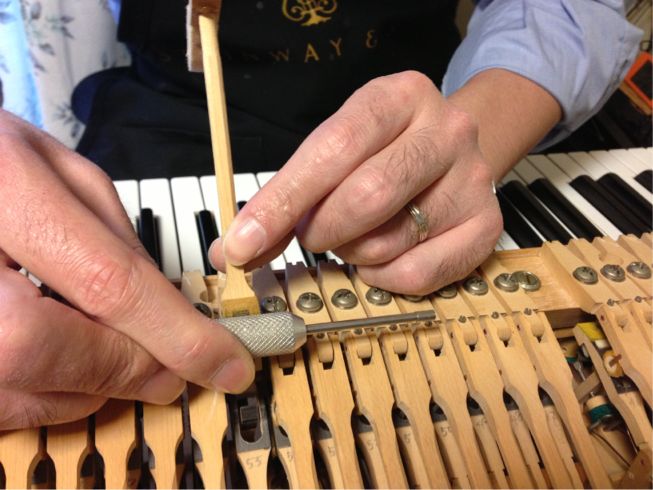 こんなことなどなど、鍵盤やアクション一本一本をチェックしながら調整してゆくのです。ほかにもまだまだいろいろありますよ。調律師さんの経験と知識、技術がものを言いますね!
