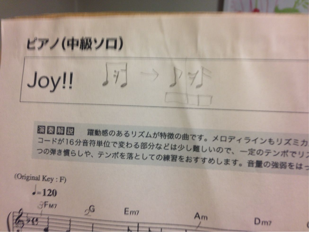 「エリーゼのために」や「ノクターン」などのクラシックの曲もあるし、今弾いているのはSMAPの「JOY !!」というとてもリズムのノリの良い曲です。