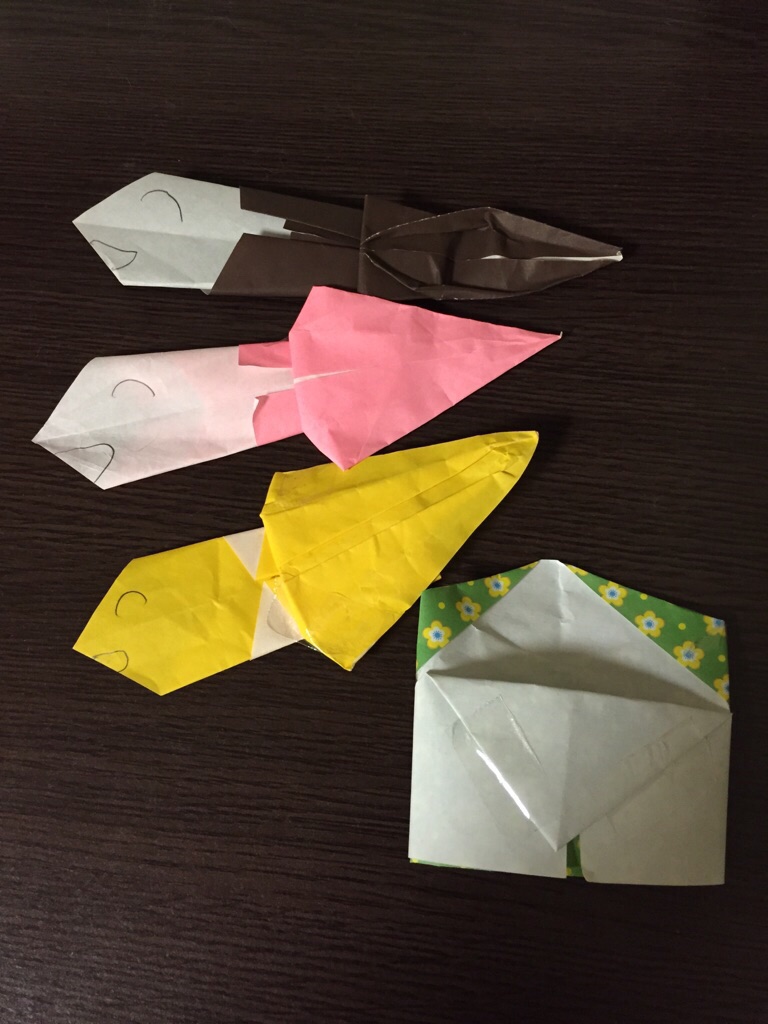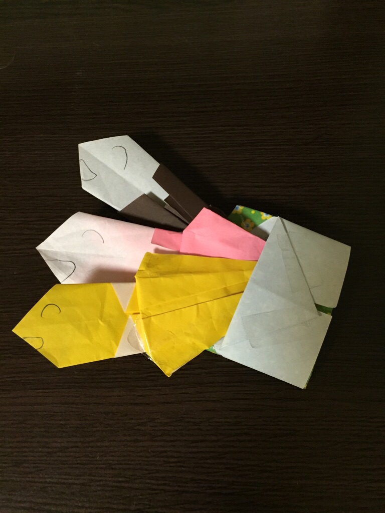 これは年長さんのMちゃんがくれた折り紙の「めだかのかぞく」