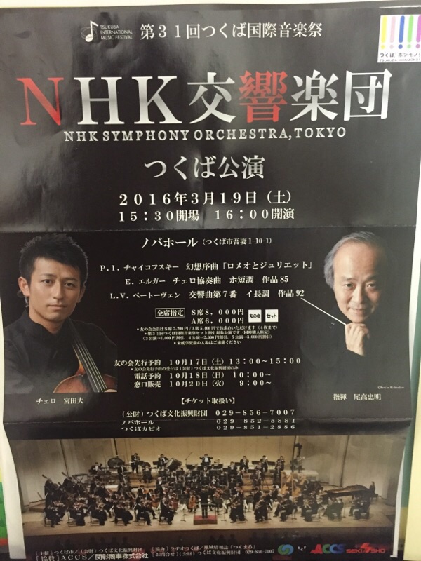 先週土曜日、19日にNHK交響楽団の演奏会を聴きにつくばのノバホールへ行って来ました!!
