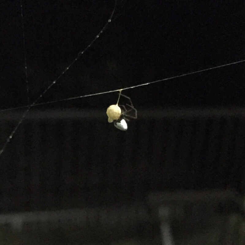 ちっこーいクモがちっこーい袋をせっせせっせと作ってました。