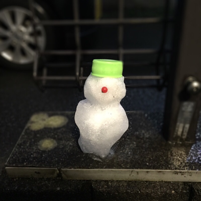 今日レッスンに来た二年生のTくんが、教室の駐車場の雪でミニミニ雪だるまを作ってきてくれました♪
