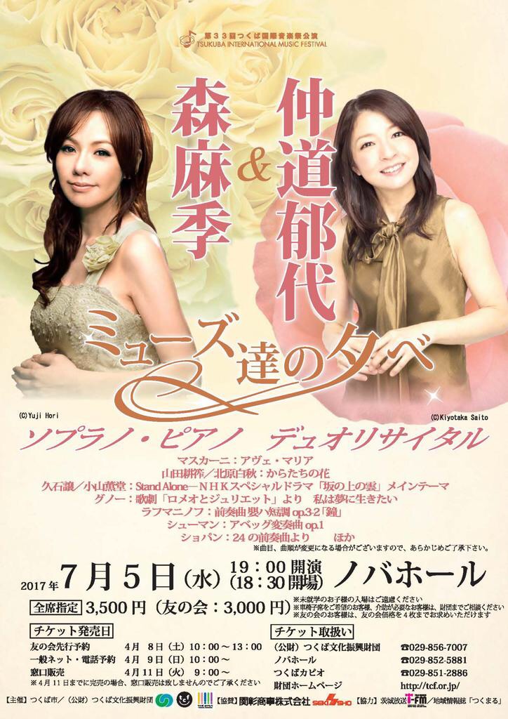 7月5日(水)につくば市のノバホールでソプラノの森麻季さんとピアニストの仲道郁代さんのコンサートに行ってまいりました♪