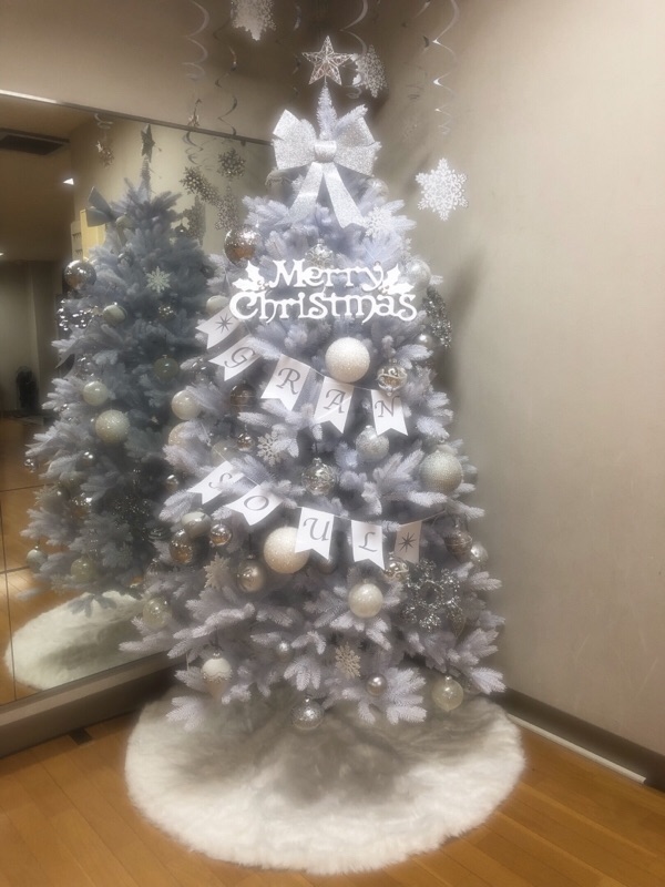 ダンススクールに行ったら真っ白なクリスマスツリーがありました♪