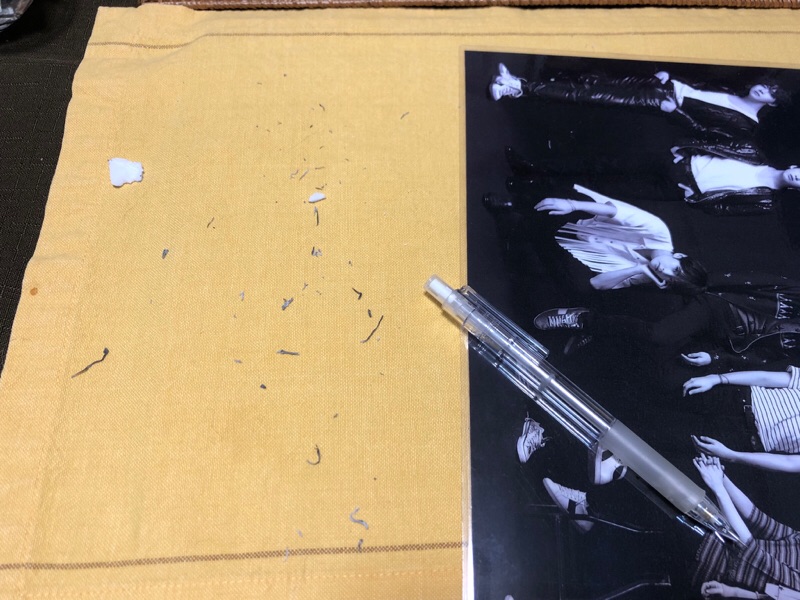 書いては消し、書いては消し・・・見てこの消しゴムのかす。