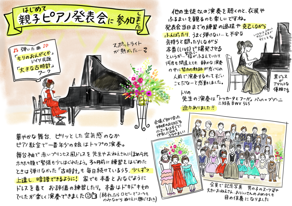 先日の発表会で初参加してくれた幼稚園年長さんのKちゃんのお母様が、ご自身のブログに書いてくださった発表会の記事を載せさせていただきます!