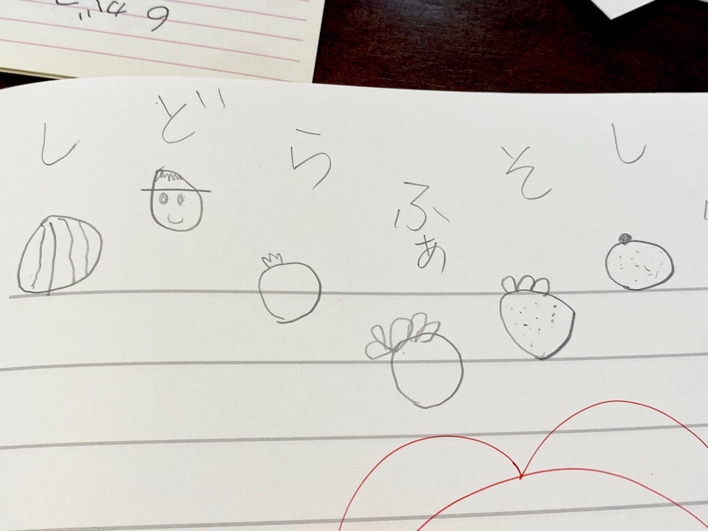 子供さんのレッスンではいつもノートの宿題も出すのですが、一年生のMちゃんはいつもかわいい音符を書いてきてくれます♪