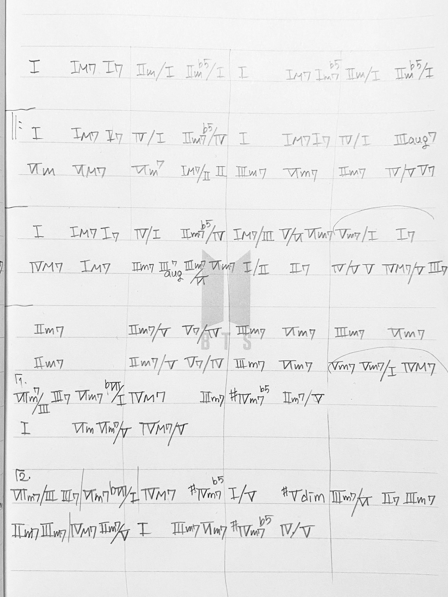 これは最近の私が修行している、数字のコード譜です。