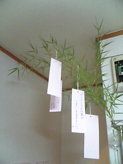でも後から気づいたけど、あれだな、たんざくだけじゃなくて、「七夕飾り」も飾るべきだったな・・・・・。願い事のみかよ!!(笑)